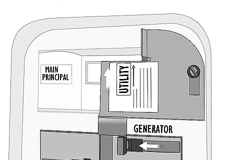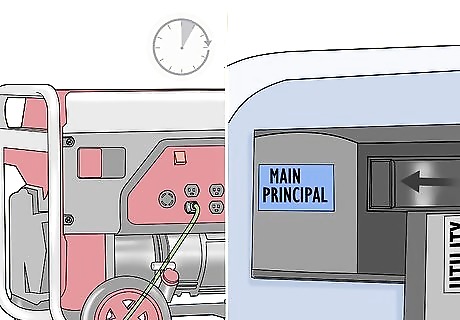 Flip the breakers in the transfer switch to the “Generator” position. The transfer switch is adjacent to your circuit breaker on the inside of the building. Once the generator is running, flip the breaker or dial on the transfer switch from either the “Utility” or “Off” position to the “Generator” position. The generator cannot power anything in the building unless the transfer switch is engaged in the correct position.