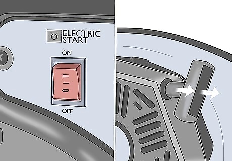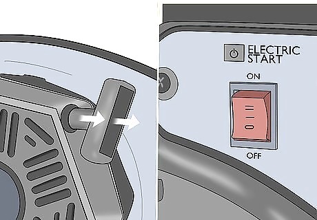 Flip the fuel valve to the “On” position. The fuel valve controls the flow of fuel to the generator’s engine and allows you to start it up. Before you start your generator, flip the colored control switch so that it’s vertical and in the “On” position.
