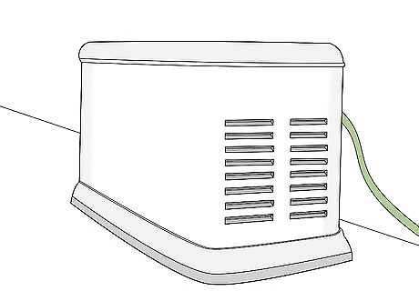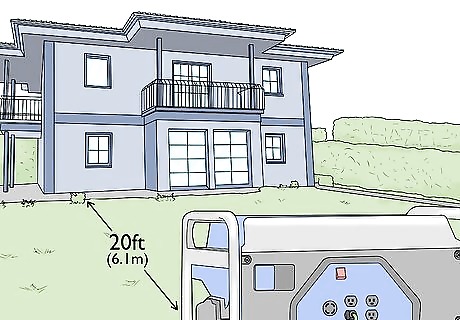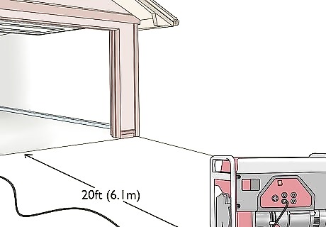 Set up the generator at least 20 feet (6.1 m) from the building. If you have a generator that isn’t permanently installed in a housing unit outside of your home or business, you need to place it far enough away to prevent any toxic fumes from entering the building. Be sure to point the exhaust ports on the generator away from any windows or doors. Generators are also very noisy and placing it far enough away can reduce the impact of the noise. They can also produce a lot of heat that you may not want near your home or business.