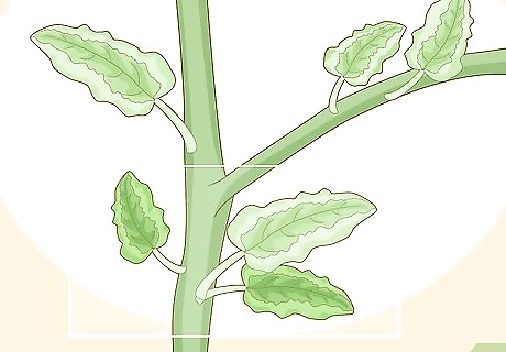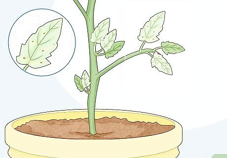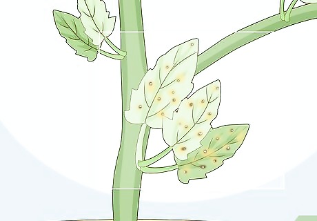 Look for yellowing leaves to indicate the start of an infection. Fungal infections usually affect the leaves first. Yellow or green discolorations on the leaves often indicate the start of a disease. These spots may spread in blotchy spots or affect the whole leaf. The particular pattern can determine which fungus the plant has. Yellow blotches or specks are usually a type of leaf mold. These spots may be paired with browning areas on the bottom of the leaf. If the entire leaf turns yellow, then the disease is probably fusarium wilt, also caused by a fungus. Remember that discolored leaves can also indicate a bacterial or viral infection. If the discolorations come with no other symptoms, then your plant may have a nutrient or water deficiency.