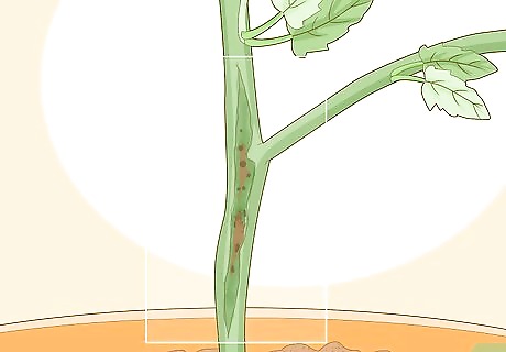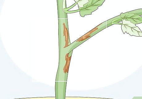 Identify blight or buckeye rot by black, brown, or white growths on the stem. Stem growths can be a late sign of blight or buckeye rot. Mold usually starts growing around these lesions in the disease’s later stages. There are also multiple types of white and gray mold that can infect the stem and cause growths. Sometimes blight and buckeye rot lesions start growing fuzzy white mold around their borders. These look like pieces of cotton on the stem. Mold growth without the presence of lesions is likely a fungal infection.