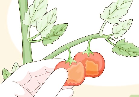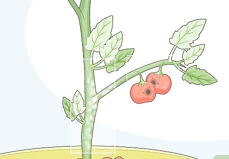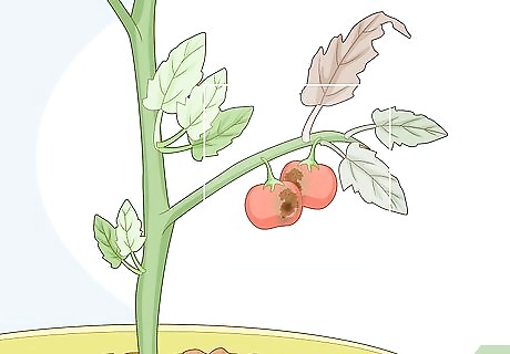 Check if the fruit turns brown or yellow. Normal tomato color progression is green to red. Any other colors indicate a problem with the fruit. Some viruses cause the plants to turn a mustard yellow or faded green. These are all potential virus or bacterial infection symptoms. Viruses can also prevent a tomato from ripening. If one remains green while the others turn red, then it may have an infection.
