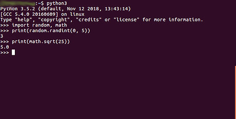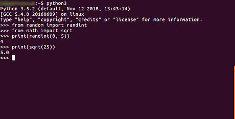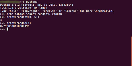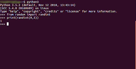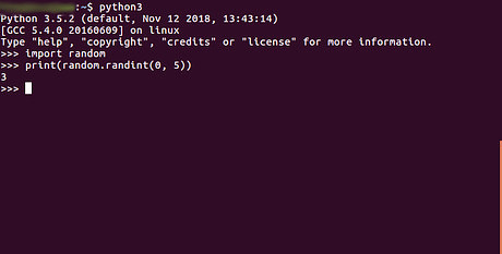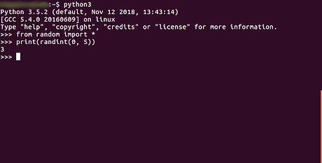 To import a module, write with the following structure: import [module] For example, to import the random module and then print a random number with its randint function: import random print(random.randint(0, 5))