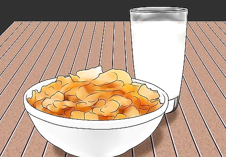 Choose complex carbohydrates. Simple carbohydrates are basic forms of sugar that your digestive system breaks down quickly. Some foods break down into sugars that your body has a hard time digesting (like lactose), which can lead to gas or bloating. Instead, choose complex carbohydrates that take longer for you to digest. These often contain fiber. Good sources of complex carbohydrates include: Beans, lentils, peas Whole grains, brans Vegetables: potatoes, pumpkin, corn, green vegetables Fruits: apples, bananas, berries