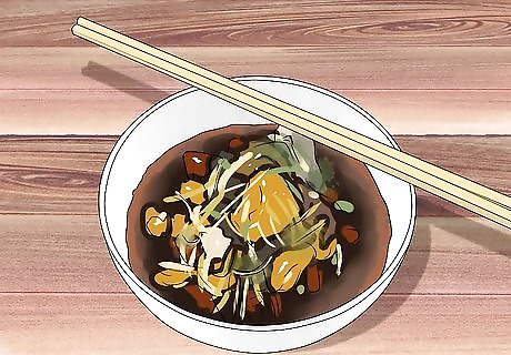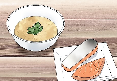 Serve dinner with fermented ingredients. Grill salmon that's been marinated in miso and serve it alongside sauerkraut or kimchi. Or, if you're eating soup, you can stir in cultured sour cream to get some fermented food in the meal. You can also garnish your meals with fermented chutneys. Consider rounding out your meal by drinking kombucha.