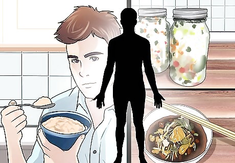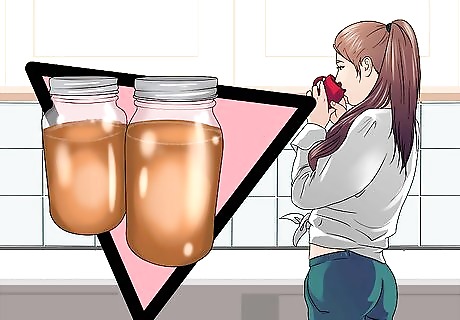 Pack a fermented lunch. Make a healthy sandwich by filling whole-grain bread with seed cheese, fermented pickles, and a lean meat. Or, if you have a little more time make miso soup and stir fry some tempeh to serve with noodles. For a fermented snack, buy commercially fermented vegetable chips like lacto-fermented carrot chips to nibble throughout the day. Sourdough bread is also good to toast up and eat with a cultured dairy dip.