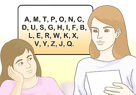 Teach the most frequently-occurring letters first. The first step in teaching your student reading fluency will be for him or her to learn the alphabet. However, teaching the alphabet in alphabetical order may not be as productive as teaching him/her letters that are most frequently encountered first. This way your student will become more familiar with those letters early on and learn to recognize and pronounce them with greater ease. Teach the sights and sounds of each letter in the alphabet in the following order: a, m, t, p, o, n, c, d, u, s, g, h, i, f, b, l, e, r, w, k, x, v, y, z, j, and q. Choose a few letters per day to focus on while occasionally reviewing ones you worked on before to assess progress. Focus on lower-case letters before learning upper-case letters, as these occur much more frequently in written text. Familiarize yourself with the sounds of letters, rather than the names of those letters.