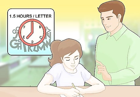 Progress at a comfortable pace. If your student is gaining a clear understanding of the shapes and sounds of letters fairly easily, then by all means push him or her to continue advancing through the alphabet. However, if your student is struggling with the alphabet, you may need to slow down and spend more time focusing on pronunciation and recognition. Some students may need as much as 1.5 hours spent on each letter before developing a firm understanding of that letter. Pushing your student to progress too quickly can result in that student lacking a firm understanding of the building blocks of words. That student will only have problems when he/she advances to working on complete words. It may be necessary to repeatedly review past letters. Quiz your student and teach them the letters they were struggling with again if necessary.