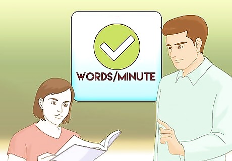 Measure your student's correct words per minute. A good way to gauge your student's progress is to measure his or her correct words per minute. This simple learning strategy tests your student's ability to get through a paragraph while also alerting you to any words that he or she is still struggling with. Time your student while he/she reads out loud for 60 seconds. Write down any words that your student stumbles over, pronounces incorrectly, or takes more than three seconds to pronounce. After 60 seconds, mark on the page where your student began and ended. Then count the number of words he or she got right versus wrong, which will give you your student's oral reading fluency rate (number of correct words per minute). Make and use flashcards from the list of words your student struggled with. Practice improving your student's fluency by listening to them read out loud for at least five days each week. Keep track of your student's progress and try to improve his/her oral reading fluency rate every week.