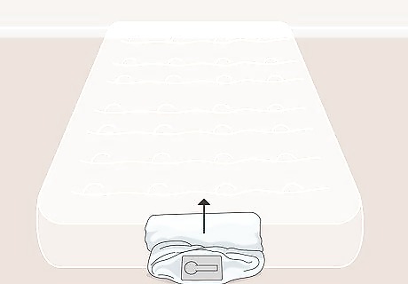 Wait for the bed to completely inflate. The pump won't turn off, so, as it's coming close to finishing and the bed feels close to firm, keep an eye and turn it off every couple of seconds.