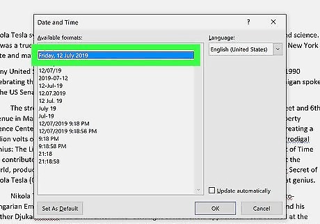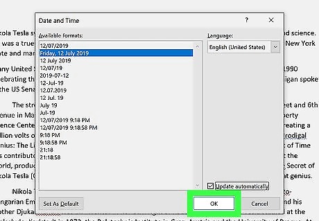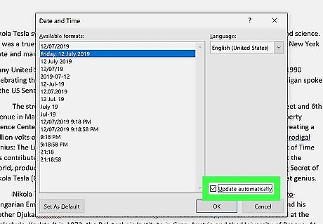 Click to check the box next to “Update automatically.” This ensures the date updates when the document is opened. You can also insert the updating date by pressing Control+⇧ Shift+D. If this is left unchecked, the date will remain the same.