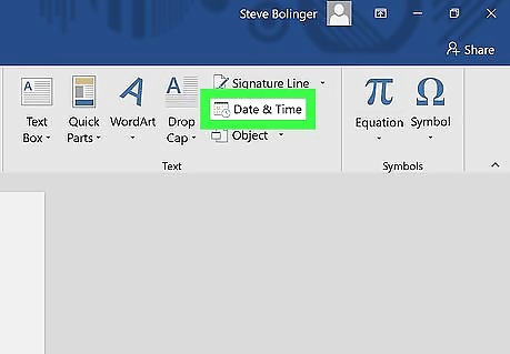Click the calendar and clock icon. This is the “Date and Time” button. Depending on the size of your screen, you might see “Date & Time” next to the icon.