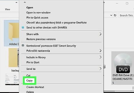 Right-click the Adobe CS3 folder. Select copy.