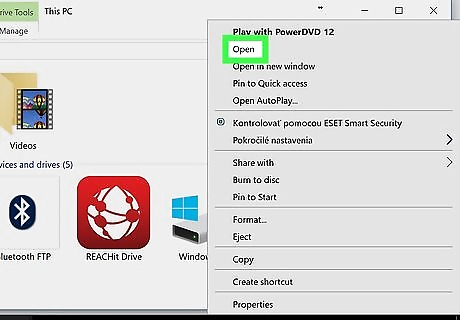Right-click the disc drive where the CD is inserted. Then select "Open."