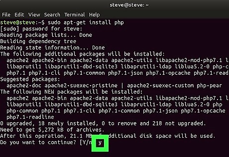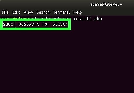 Tell Terminal to install PHP. Type the following code into Terminal, then press ↵ Enter: sudo apt-get install php