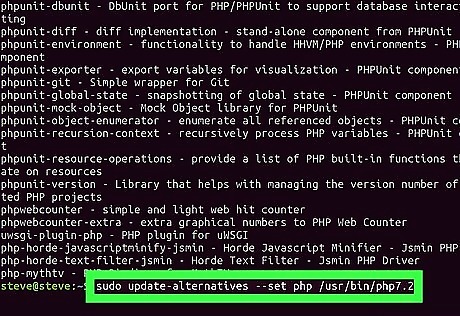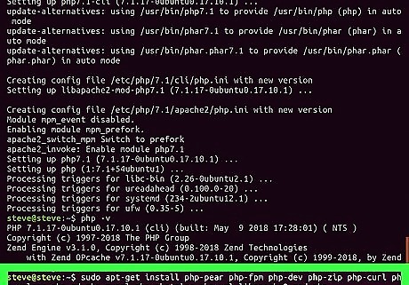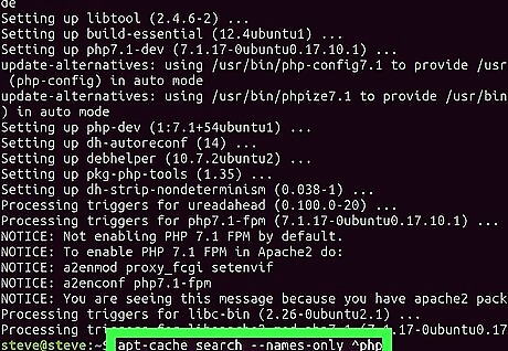 Install common PHP modules if needed. If you're working with PHP in an environment that requires add-ons, you can install commonly used ones by entering the following code into Terminal and then pressing Y and pressing ↵ Enter: sudo apt-get install php-pear php-fpm php-dev php-zip php-curl php-xmlrpc php-gd php-mysql php-mbstring php-xml libapache2-mod-php