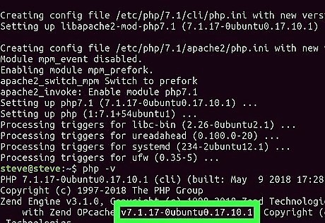 Look for a confirmation message. You should see a verification message inside Terminal that reads something like "PHP 7.2.7-0ubuntu0.18.04.2 (cli) (built: [date]) (NTS)". This confirms that PHP finished installing correctly.