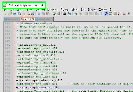 Using Notepad, open the file "C:\Server\php\php.ini".