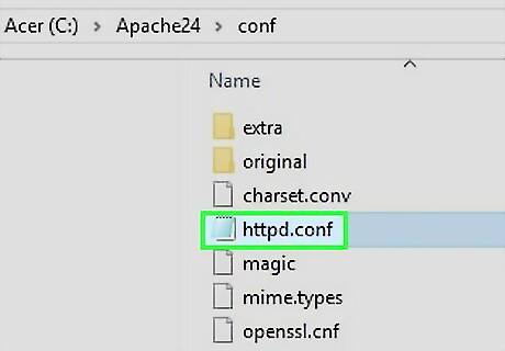 Double click the file "httpd.conf" so we can edit it. This will normally open the file in Notepad, unless you use a different program.