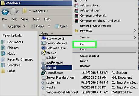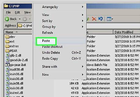 Right-click an empty area in the window and select "Paste". This moves the "php.ini" file from the Windows directory to the PHP directory.