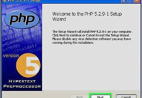 On your Windows Desktop, double click the PHP installer file. Once you've done that, you should see a window that looks like this: