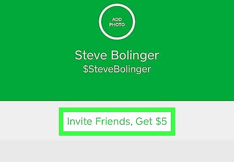 Tap Invite Friends, Get $5. In the profile page, this option is at the top of the menu. It's below the banner with your photo, name, and Cashtag. You'll be prompted to connect your contacts to the Cash app if you haven't yet done so, tap OK when prompted.