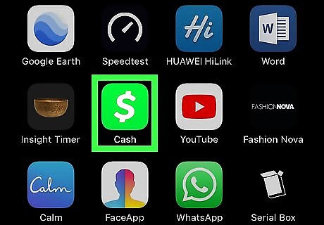 Open the Cash app. The Cash app is the app that has a green icon with a white dollar sign.