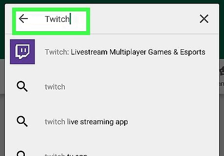 Navigate to the Twitch app’s Play Store page. To do this, simply type “twitch” into the search bar at the top of the page and tap on it in the list of search results (it’ll have a purple icon with a white word bubble in it).