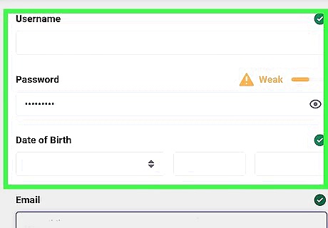 Enter your account information. When creating a Twitch account, you’ll need to enter the following: Email or Phone Number Username Password Date of Birth