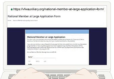Submit an application to join a national or local post. Decide if you’d like to stay active in your local community, or if you’d prefer to keep a more general membership. Feel free to apply as a national member, or Member at Large, which requires you to contact the organization’s National Headquarters. If you’d prefer a more low-key membership, apply to join a Local Auxiliary Post. The requirements and fees for local groups will differ. Check out this website to find your nearest local group: https://vfwauxiliary.org/auxiliary-locator. To apply to be Member at Large, fill out this form: https://vfwauxiliary.org/national-member-at-large-application-form.