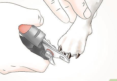 Clean off your pet’s paws after going for a walk. Use a pet-safe wet wipe to clean any dirt, silt, sand, salt, or other particles from your pet’s paws. While taking your dog out in inclement weather, pack some wipes for the trip. Before you step inside your home, wipe down your dog’s paws. Dog booties can also help prevent your dog’s paws from getting dirty!