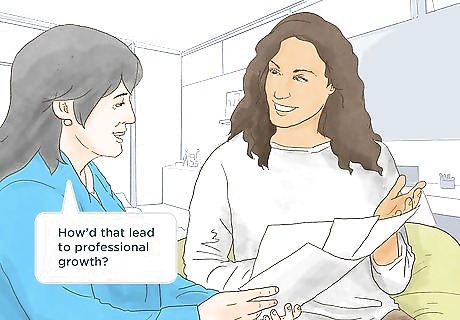 Prevent rambling with follow up questions. If it feels like the candidate has veered off on a tangent and is getting away from the topic, a gentle nudge back in the right direction can do the trick. Ask them questions like, “And how did that make you feel professionally?” or “How did that experience lead to professional growth?” to get them back on track.