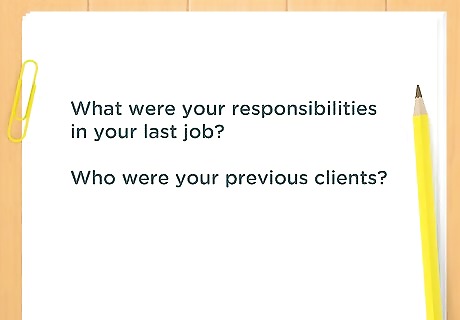 Prepare questions for the interview. Your questions should be concise and clear to avoid confusing the applicant and to ensure you get the type of answer you want. Refer to the candidate's history to tailor questions specific them. Have a list of follow up questions to go deeper depending on how the applicant answers the initial question. Really think about the types of things you want to know about the candidate. If you're a team oriented department, ask them if they prefer working with a team or alone. Don't waste time on questions you don't care to know the answers to. If where they see themselves in 5 years isn't important to the job, then don't ask them.