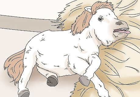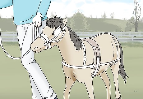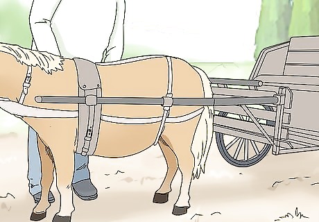 Attach your mini horse to a small cart when it can pull with ease. Choose a cart that’s made for miniature horses or ponies. Hook the halter straps to either side of the cart. Then, the horse is ready to drive. It’s best to check with your equine vet or horse trainer before attaching your horse to a cart. They can make sure your horse is fit enough to pull a cart.
