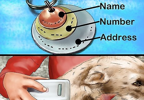 Make sure your dog’s identification tags are updated. Put your dog’s name, your name, address, and cell phone number on your dog’s tags. It’s preferable that your dog wears a collar with tags at all times, especially before a storm or disaster. Consider having your dog microchipped, but remember a microchip works best when paired with an identification tag. If your dog goes missing during extreme weather or an emergency situation, the average person won’t be able to scan for a microchip. They will, however, be able to read a tag with your name and number listed. The best protection for your dog is a combination of tags and a microchip. Chips can be scanned by most vets, shelters, and dog wardens, and offer an additional layer of security if your dog's tags become lost. An individual can have a professional scan for a chip, which will pull up your contact information and help them reunite you with your pet.