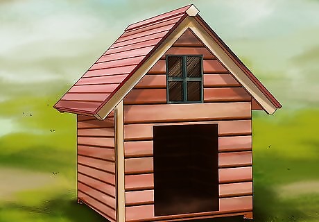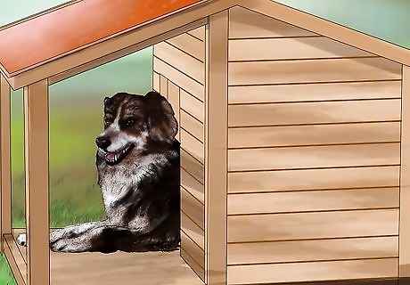 Keep your dog inside as much as possible. During hot spells, your dog is better off inside, preferably in an air conditioned environment. Watch the humidity level in addition to the temperature. Dogs can't cool themselves as efficiently as humans, and can't keep their body temperature in check if the humidity is too high. If you do let your dog outside during hot weather, make sure it has access to shade. If your yard has no shade trees, use a doghouse or tarp to provide shade.