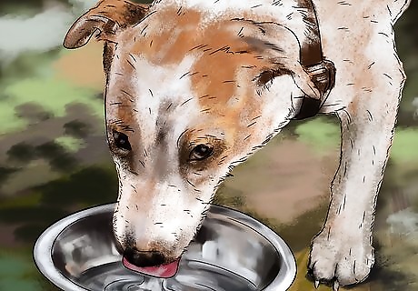 Provide plenty of water. Keeping your dog hydrated is key to helping it maintain its body temperature during extreme heat. Make sure it can access water at all times. Change the water in its bowl regularly to ensure it always has cool or cold water to help it avoid heatstroke.