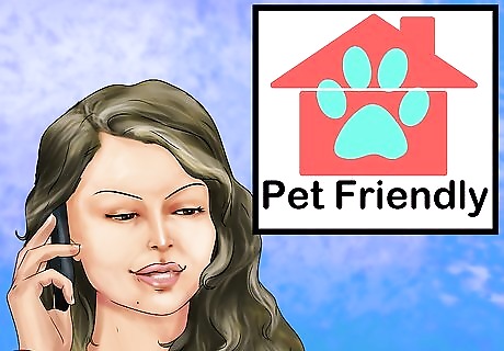 Know which evacuation shelters are pet friendly ahead of time. Call your local emergency management office and ask about area pet-friendly shelters. Keep a list handy of shelters or hotels that are dog-friendly options before an extreme weather emergency occurs. Be sure to ask about any breed or size restrictions. Make a reservation as soon as you decide to evacuate or if a mandatory evacuation is ordered.