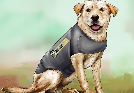 Keep your dog calm during storms. Sensitivity during a storm can lead to anxious behavior, so it’s important to try to keep your dog calm. Try staying in an interior room without windows, give your dog praise and treats when it’s calm during a storm, and consider investing in a snug-fitting calming jacket.