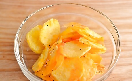 Season chips with salt or your choice of seasoning. Depending on your tastes, you can combine plain salt with garlic powder, cayenne pepper, onion powder, dry mustard, dill or other seasoning mixes.