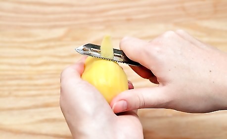 Clean and peel as many potatoes as you need based on the amount of chips you want to make. If you want healthier chips leave the skin on and clean well. An average-sized potato yields about 10 to 15 chips, although amounts vary based on the size of the potato and how thinly you slice it. Idaho potatoes are recommended for chips, but you can use any variety you have on hand.