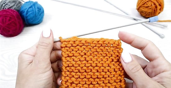 Learn how to knit stitches. For this project, either the garter stitch or cabbage stitch are recommended. The garter stitch in particular is a useful stitch that many beginners learn and will produce a sturdy, flexible piece of knitting. To complete the garter stitch, hold your needle with the cast on stitch in your left hand and your other needle in your right hand. Insert the right needle into the first loop between the topmost stitches on the left needle so that the right needle crosses beneath the left needle. The yarn should lie to the back of your needles. Wrap the end yarn around the tip of the needle counterclockwise and hold it with your right index finger. Gently pull the tip of the right needle back through the first loop, keeping the yarn you looped around on the needle. Slowly pull the right needle all the way through and bring it up so that it is close and on top of the left needle. Be careful not to pull too hard so you don’t pull it out. Move the right needle upwards so that only the first loop on the left needle slides off over the top. Continue the rest of the stitches by inserting the right needle into the next loop on the left needle. Once all the loops are on the right needle you have finished your row. Switch the needles into the opposite hands and repeat for the next row.