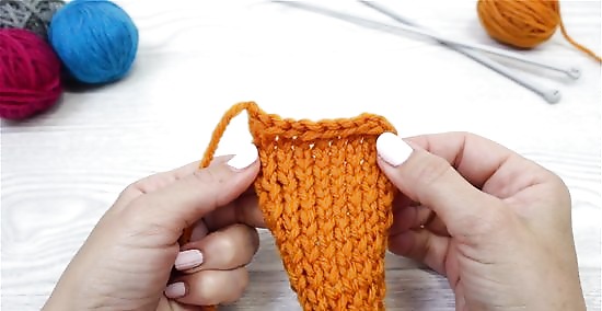 Knit the rows the length of the headband. Because you'll want your headband to have some stretchiness, knit in a garter or cabbage stitch. In this example, cabbage stitch is used.