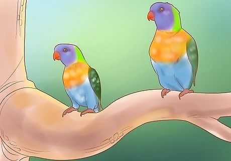 Figure out how you'll recreate their natural habitat. Lories and lorikeets live in trees and are used to flying between branches. Look into creating perches that will give them (literally) a bird's eye view of the room. Prepare to give them places to hide as they do in the wild. Lories and lorikeets also need UVA and UVB light to produce their own Vitamin D. If you can't give your bird at least four hours of unfiltered sunlight each day, be prepared to buy a full-spectrum UV lamp from your local pet store.