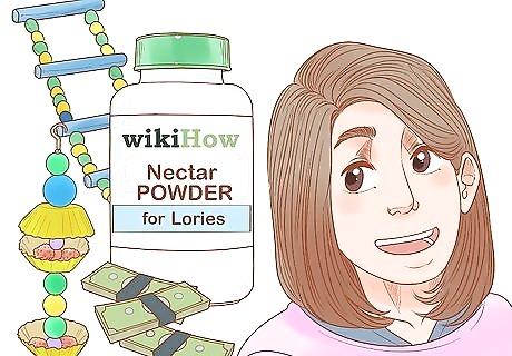 Figure out your initial costs. Expect to pay at least $200-$300 USD for the adoption fee for each bird. Add the cost for their cage (at least $200) and UV lamp. Consider buying a mister for daily showers. You'll also need to buy one bowl for water, one for nectar, and one for fresh fruits and veggies.