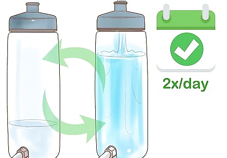 Expect to replace their water several times a day. Lorikeets like to use their water for bathing, as well as drinking. They can get food, feathers, and even poop into their water. Check their bowl every few hours. When you see stuff floating in the water, clean the bowl and replace it with fresh water.