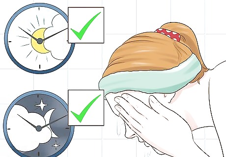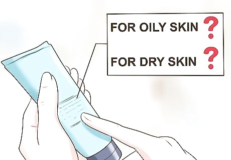 Decide if you are using the correct skincare products. Some people end up with pimples or blackheads because they aren’t using the right products for their skin. Whether you have oily, dry, or combination skin will influence which products you choose. To do this, you need to determine what type of skin of you have. Oily skin is shiny with larger pores. Dry skin has dry, red patches. Combination skin is both. You may have dry patches, but your T-zone (your forehead, nose, cheeks, and chin) may be oily. People with any skin type should wash their face twice each day with face washes labeled non-comedogenic. Salicylic acid works well for oily skin. Dry skin needs a gentle cleanser that moisturizes and doesn’t over-dry your skin.