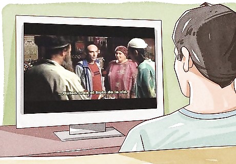 Watch movies and TV shows in Hebrew with subtitles. Netflix, Hulu, and Amazon all have Hebrew TV shows and movies available to subscribers. Hearing the language spoken while reading subtitles is a great way to familiarize yourself with common words and phrases while looking at translation. As you get more comfortable, you can turn off the subtitles for a little to see if you understand what the characters or saying. If you become confused, you can always rewind and watch with the subtitles turned on.