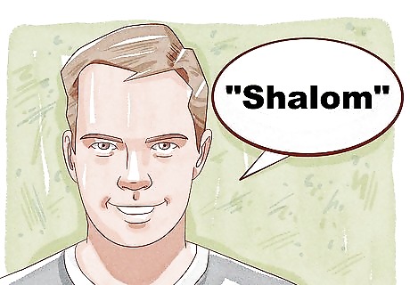 Learn how to greet people and introduce yourself. Introducing yourself opens the door for talking to new people and making friends who can help with your Hebrew learning. There are a few different ways to say hello and to talk about yourself in Hebrew. "Shalom" means both "Hello" and "Goodbye" in Hebrew. It's a very common greeting and can help you open or close a conversation. It also means "Peace" and is a demonstration to the other person that you respect them. "Boker Tov" and "Yom Tov" are more specific greetings meaning "Good Morning" and "Good Day" respectively. You can use these instead of "Shalom" to greet someone.