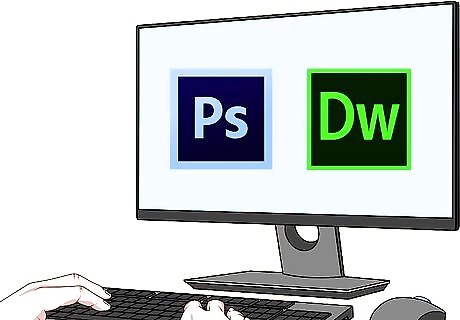 Download or purchase some web design software. Good web design software can help you build websites more efficiently and effectively, and is also great for helping you learn the ins and outs of applying coding, scripting, and other key design elements. You might benefit from using tools such as: Graphic design programs, like Adobe Photoshop, GIMP, or Sketch. Website building tools, such as WordPress, Chrome DevTools, or Adobe Dreamweaver. FTP software for transferring your finished files onto your server.
